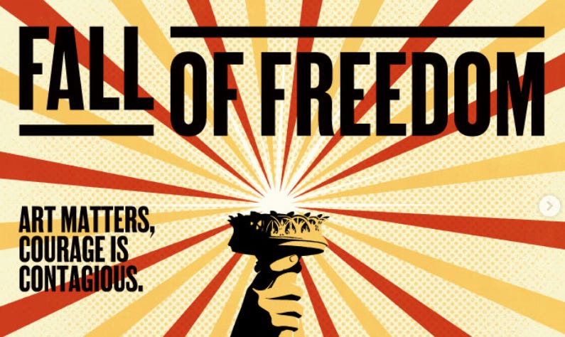 Starting today, artists across the country are displaying their take on resistance in a wide array of forms and venues. On November 21st and 22nd, the Fall of Freedom event brings together art displays that are “independently organized, yet united by the shared value of standing against fascism.”