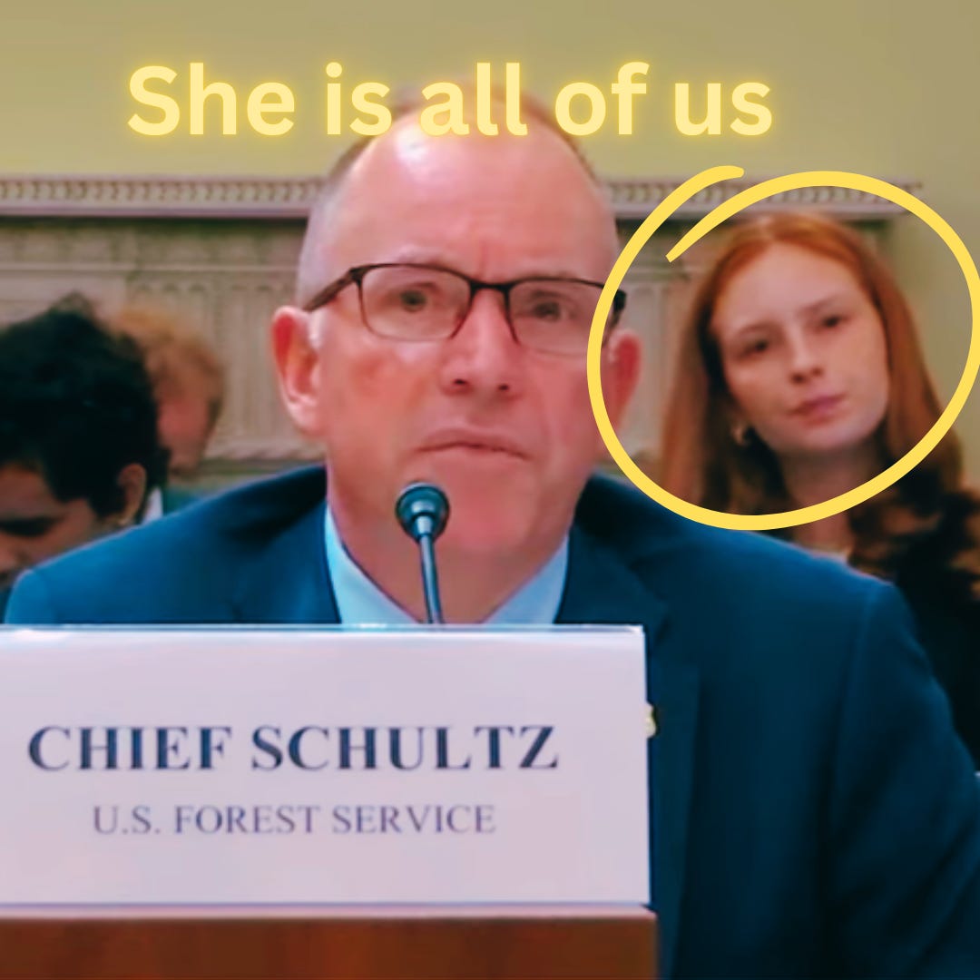 And then she brought in the law. Congress controls the budget. They mandate how to allocate funds. If Congress allocates the money to USFS for these operations, will you commit to using it as directed? In a roundabout way, Schultz said no.